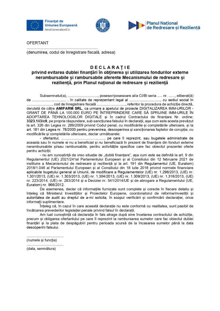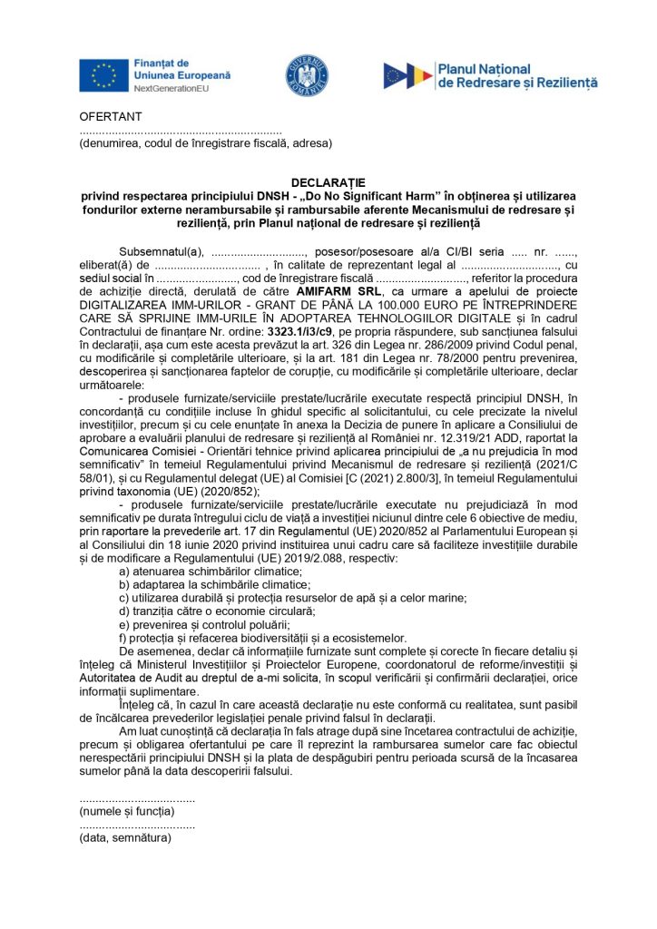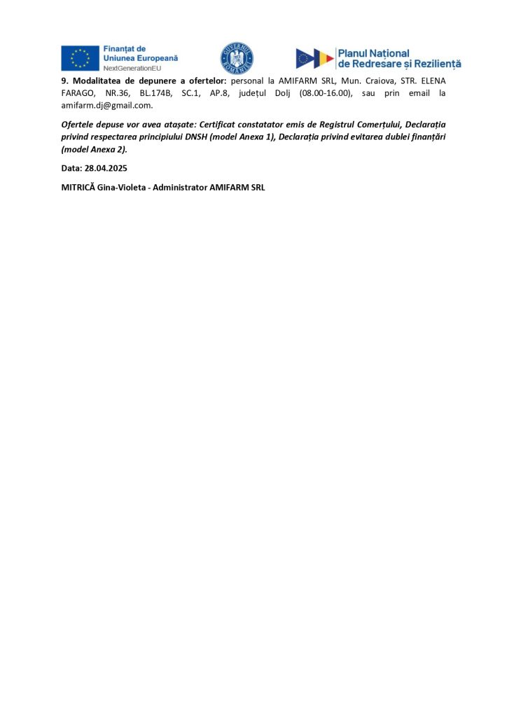 AMIFARM SRL anunță demararea procedurilor de ACHIZIȚIE DIRECTĂ în cadrul proiectului cu titlul ”SPRIJIN PENTRU DIGITALIZAREA AMIFARM SRL”, CONTRACT DE FINANȚARE Nr. ordine: 3323.1/i3/c9, Servicii de informare si publicitate (1 buc.)